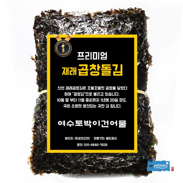 (여수토박이건어물)프리미엄곱창돌김50매,100매