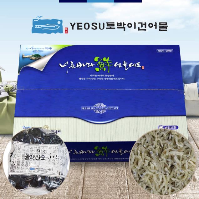 (여수토박이건어물)선물세트 진도 돌각산모미역170g이상+여수멸치 세멸치300g