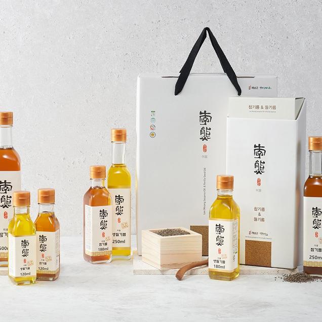 (참사랑에프앤비)HACCP인증 국내산100% 죽향 참기름세트(참기름120ml*2병+들기름120ml*1병)