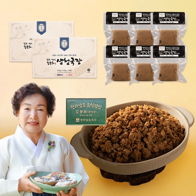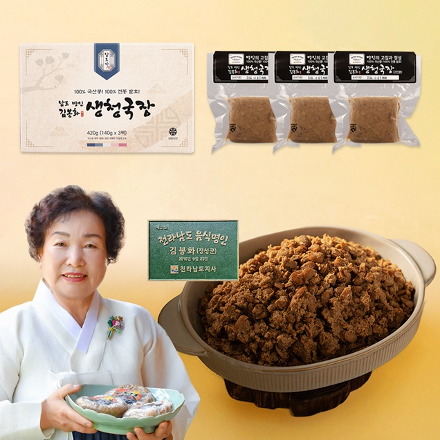 (남도가식품) [명인제조 100% 국산콩] 남도명인 김봉화 생청국장 2인분X3팩 깔끔 한끼 팩포장 냄새 없는 전통 청국장