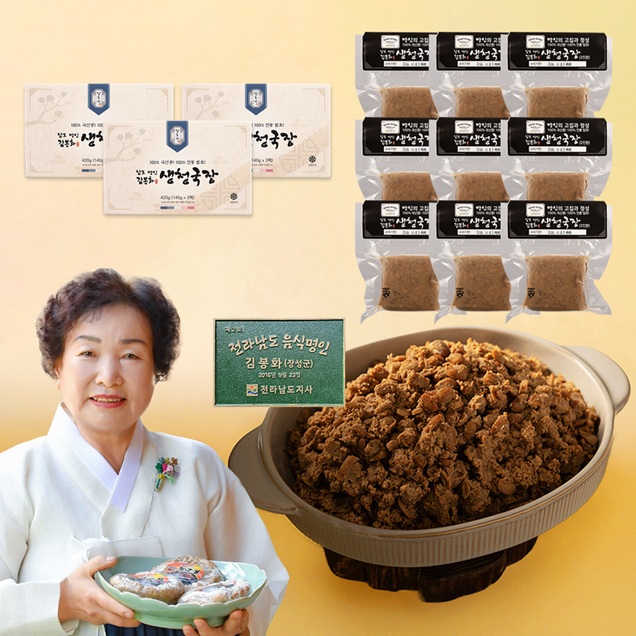 (남도가식품) [명인제조 100% 국산콩] 남도명인 김봉화 생청국장 2인분X9팩 깔끔 한끼 팩포장 냄새 없는 전통 청국장