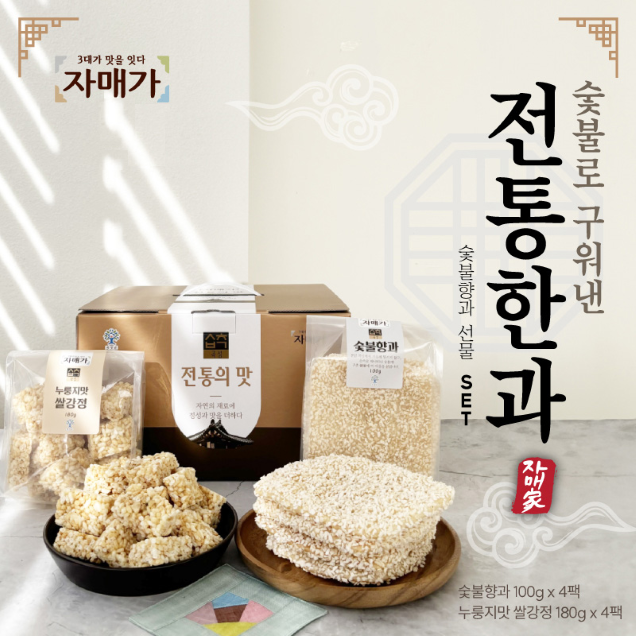 (자매가) 숯불에 구운 전통 숯불유과, 숯불향과 선물세트(숯불향과, 누룽지맛 쌀강정)