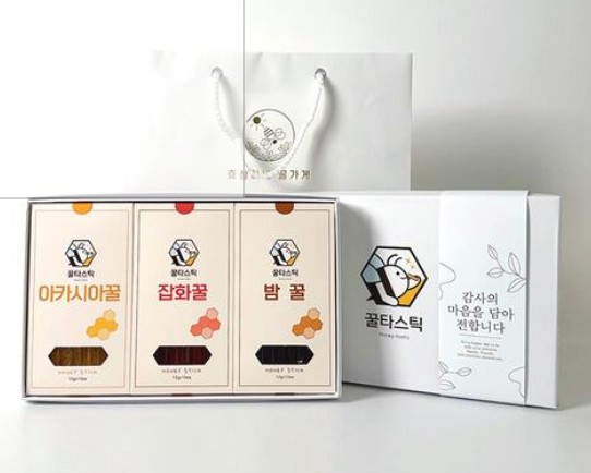 (비케어풀)천연벌꿀 100% 허니스틱 육각선물세트 30포