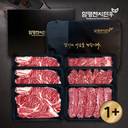 (함평천지한우) 함평한우 프리미엄 선물세트 5호 등심(3팩)특수부위(3팩) (각 300g) 1+등급