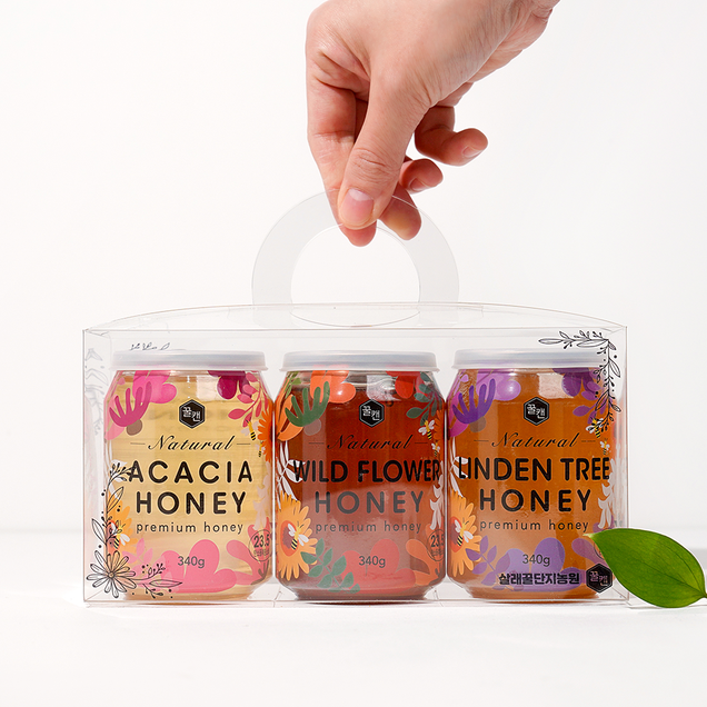 (꿀단지농원)직접 양봉한 천연 순수꿀 꿀캔 3종 세트(340g*3캔)