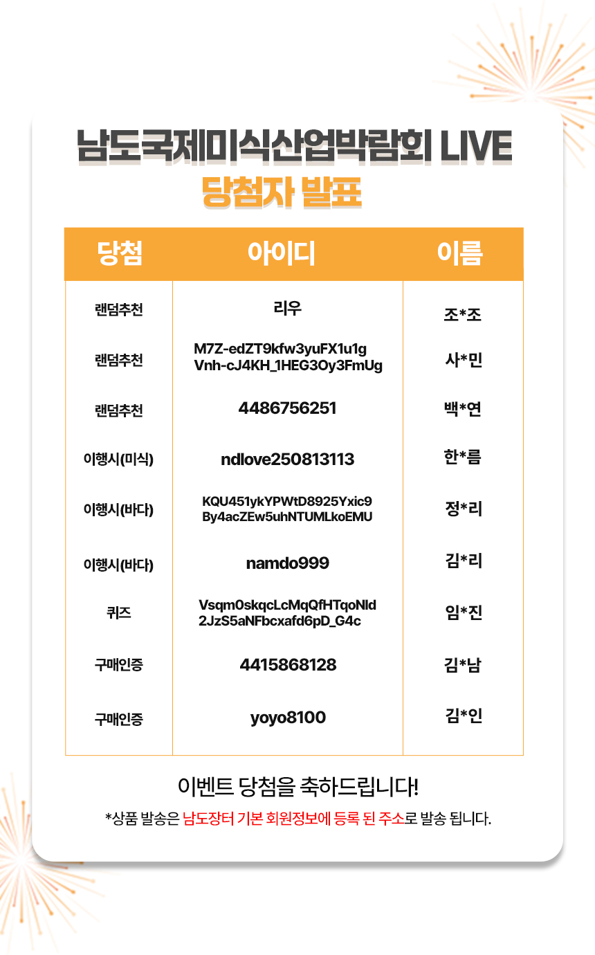 2025년 남도국제미식산업박람회 LIVE 당첨자 발표