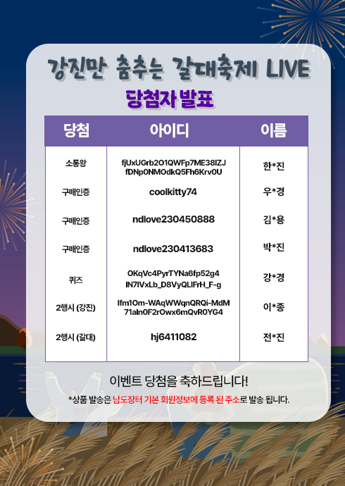 2025년 해남 미남 축제 LIVE 이벤트 당첨자 발표