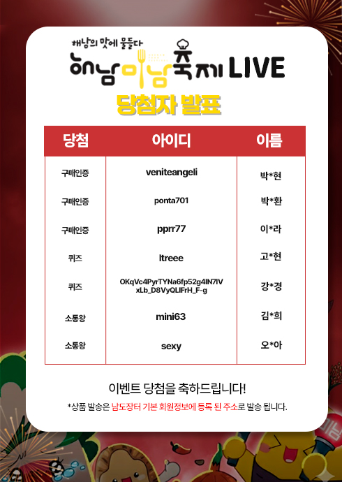 2025년 해남 미남 축제 LIVE 이벤트 당첨자 발표