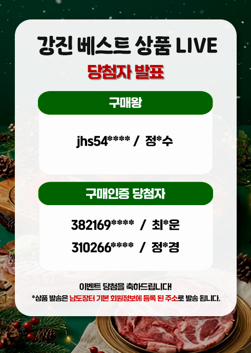 올해 마지막 찬스! 강진 베스트 상품 LIVE 이벤트 당첨자 발표