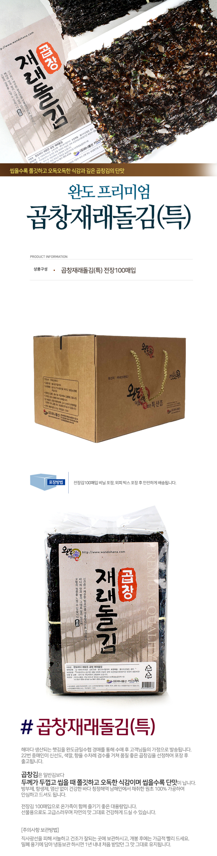 (하나물산) [완도산][프리미엄]곱창재래돌김50장 2봉 총 100장,1속 수작업선별 선물용강추