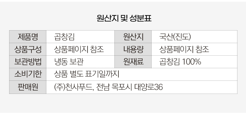 | 세부 품목군별 표시사항 | 상세페이지 참조 |