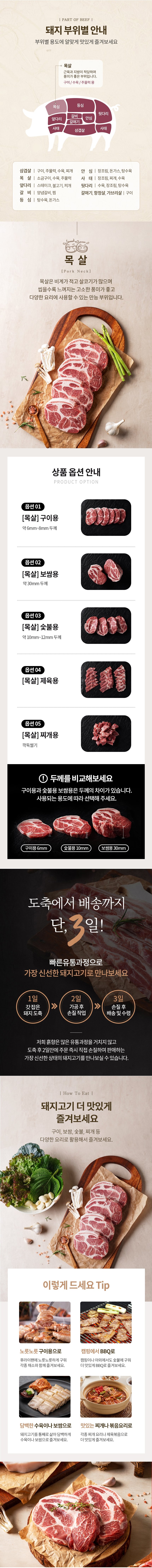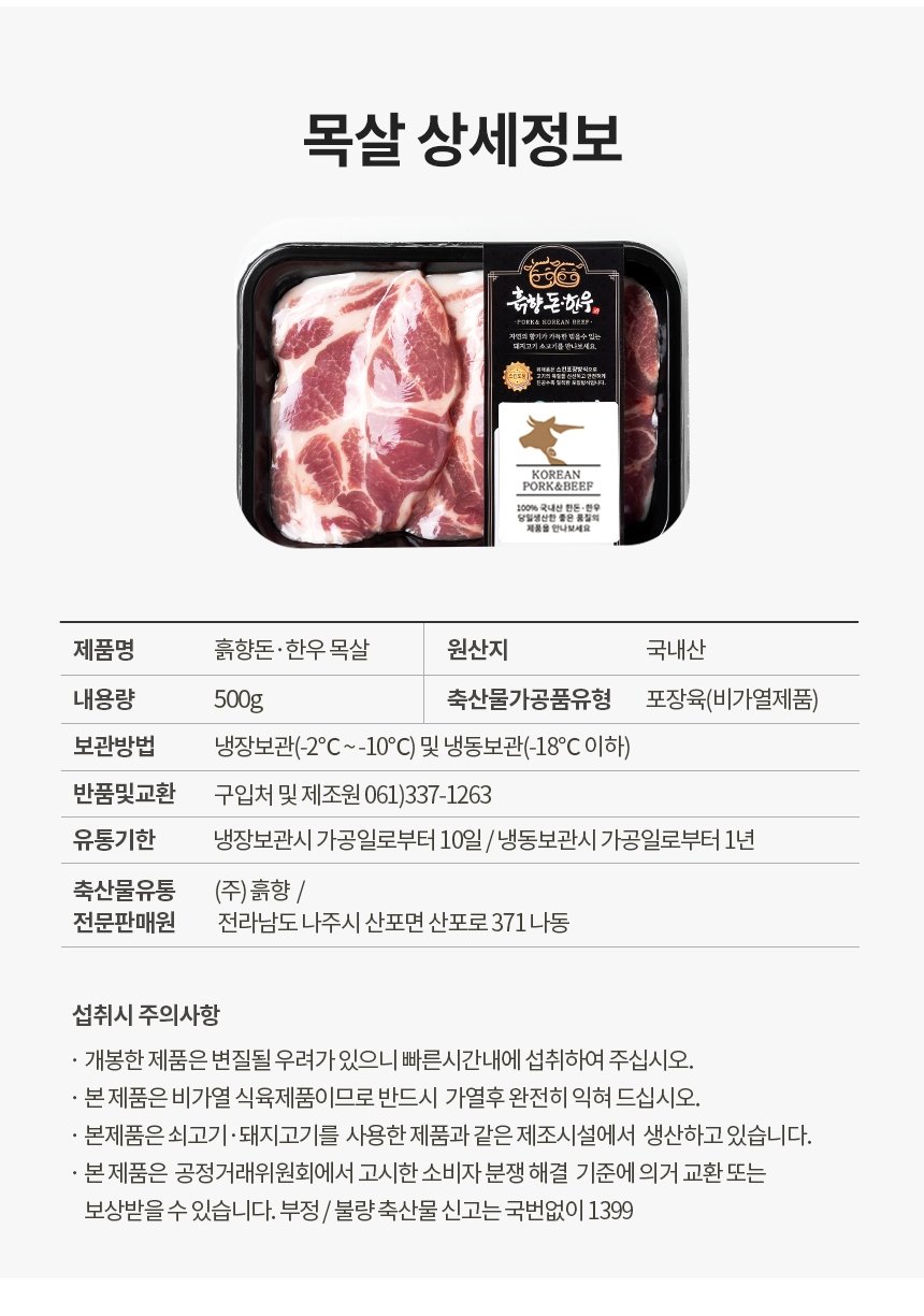[aT농할](농할 할인)(흙향)국내산 돼지 목살 500g+500g=1kg (구이용) 무료배송