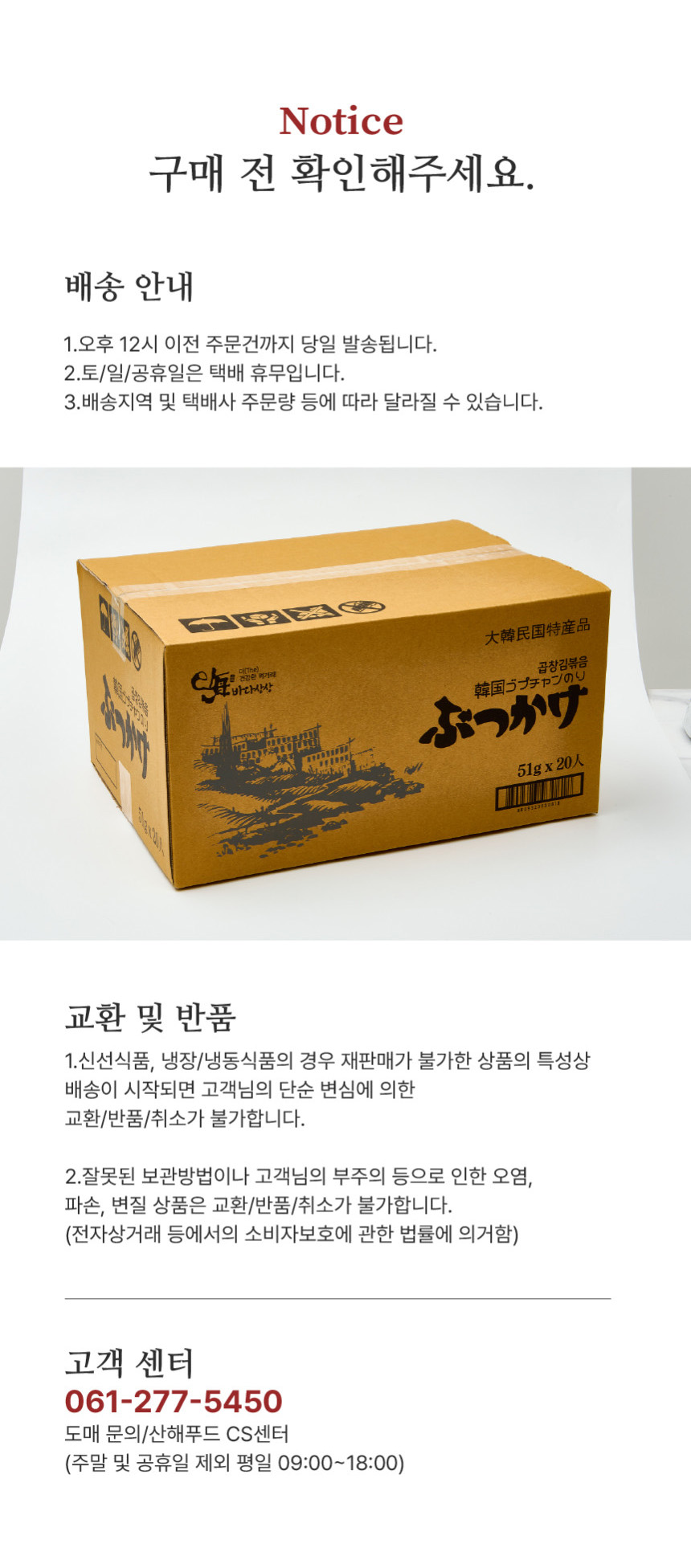 | 식품 등의 표시, 광고에 관한 법률에 따른 소비자안전을 위한 주의사항 | 상세페이지참조 |