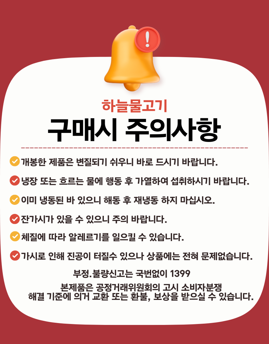 | 식품 등의 표시, 광고에 관한 법률에 따른 소비자안전을 위한 주의사항 | 상세페이지참조 |