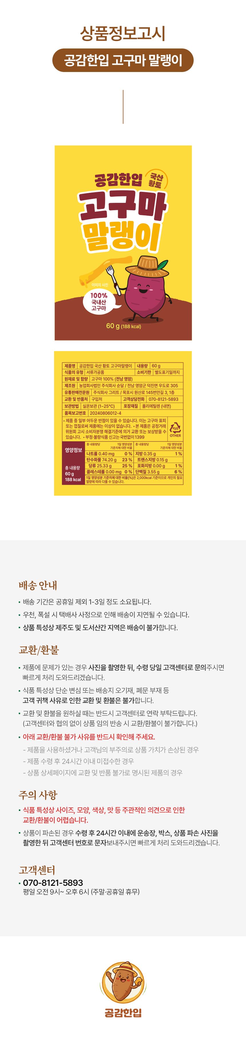 [온판지] (그리트) 공감한입 국산 황토 고구마말랭이 60g 10개입