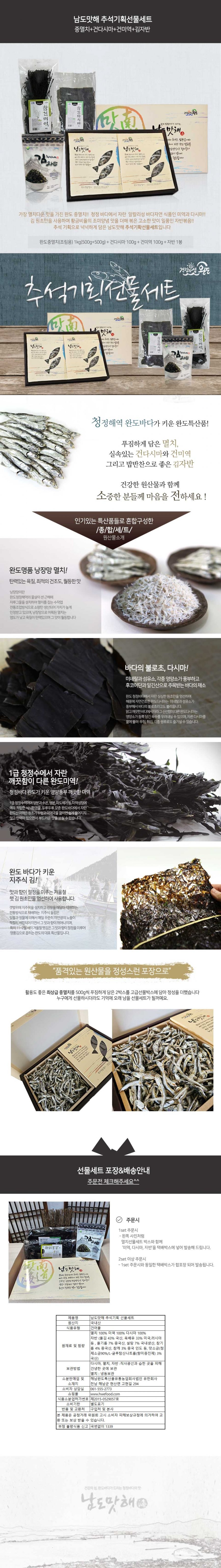 [연말기획전] (해남완도) 기획선물세트멸치혼합선물세트 (중멸치1kg건다시마100g건미역100g자반1봉)