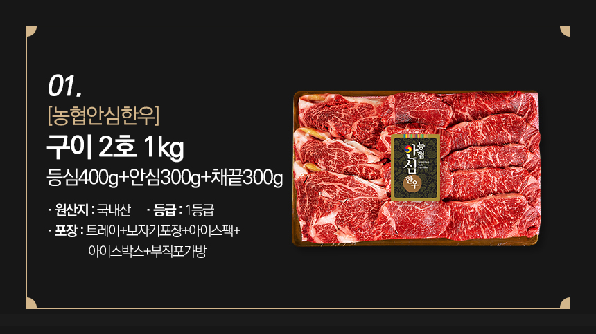 [2026설] (신선행) [냉장][농협안심한우] 한우구이 2호 1kg(등심+안심+채끝)
