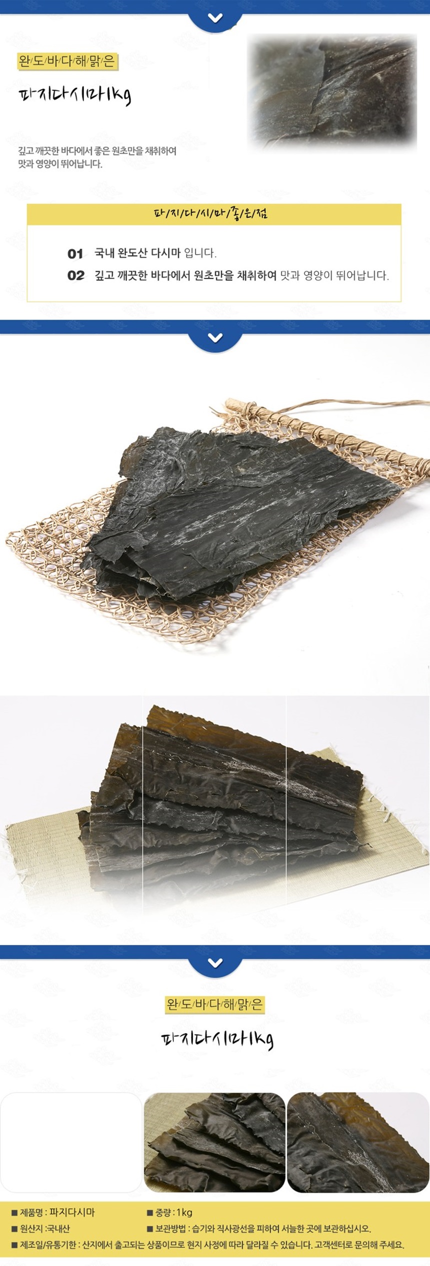[2026설] (하나물산) 하나물산 파지다시마 1kg 대용량(국산-완도산/육수용)