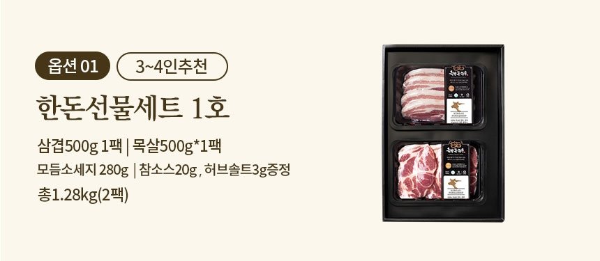 [2026설] (흙향)한돈선물세트 1호 삼겹살 500g + 목살 500g + 소시지 280g(참소스,허브솔트 동봉)=1.2kg
