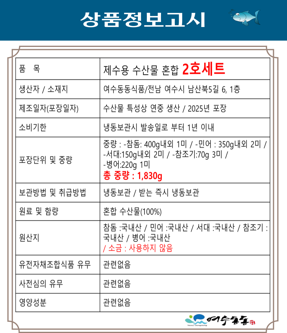 [Live] (여수동동식품) 제수용 수산물 혼합생선 2호 세트