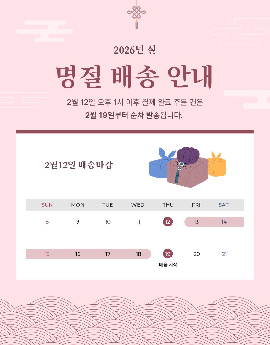 배송지나 택배사 사정 등으로 변경될 수 있습니다.