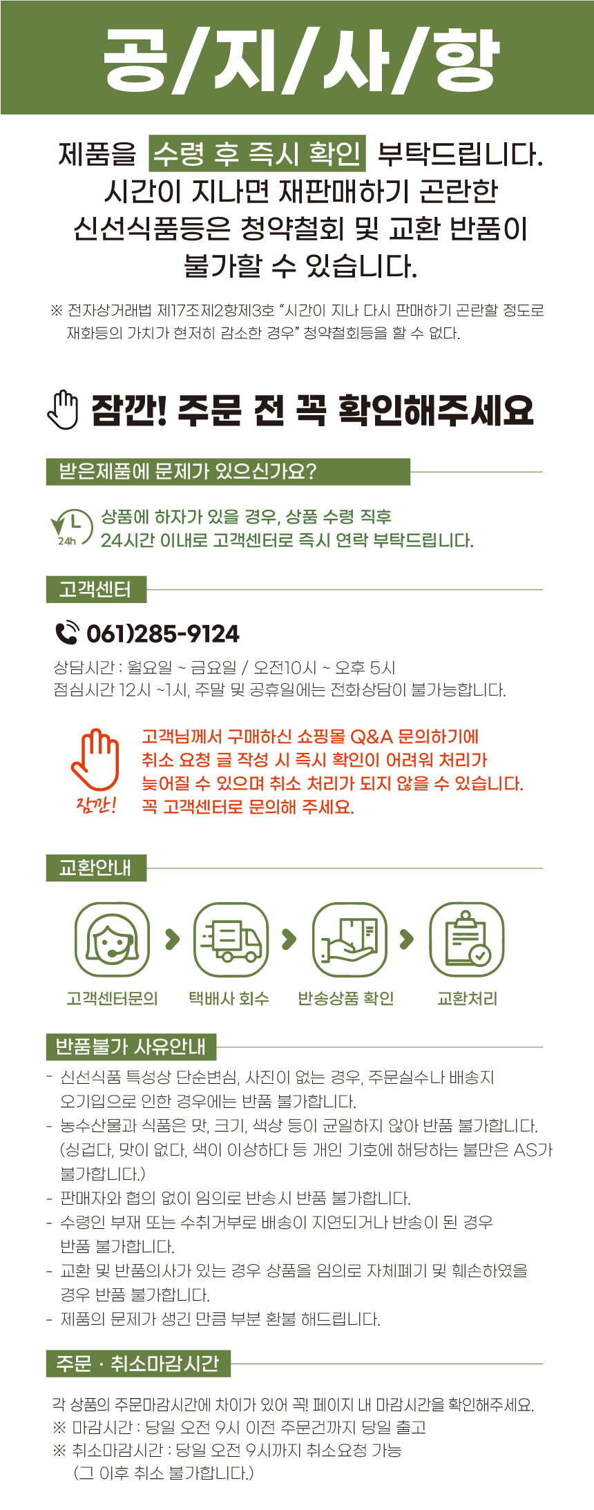 | 소비자 상담 관련 전화번호 | 061-285-9124 |