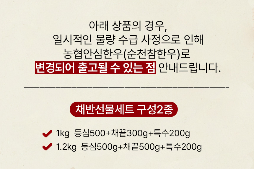 | 품목 또는 명칭 | 한우선물세트 1등급 1kg, 1.2kg |