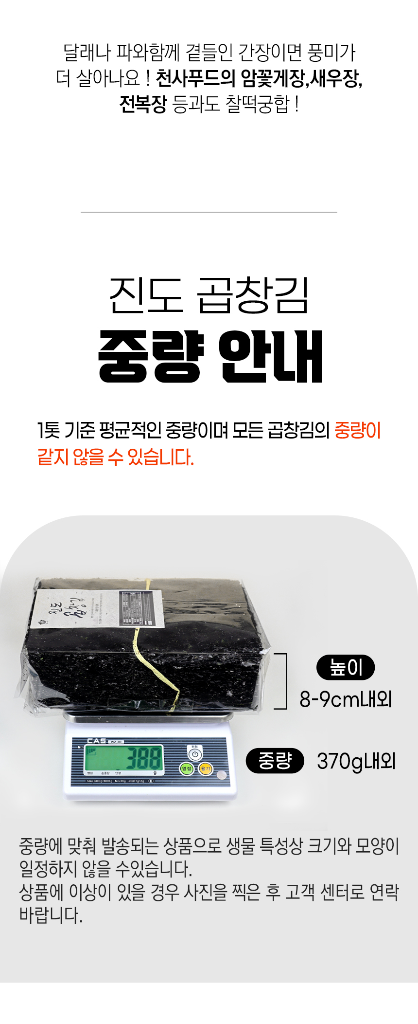 | 포장 단위별 내용물의 용량 (중량), 수량, 크기 | 상세페이지참조 |