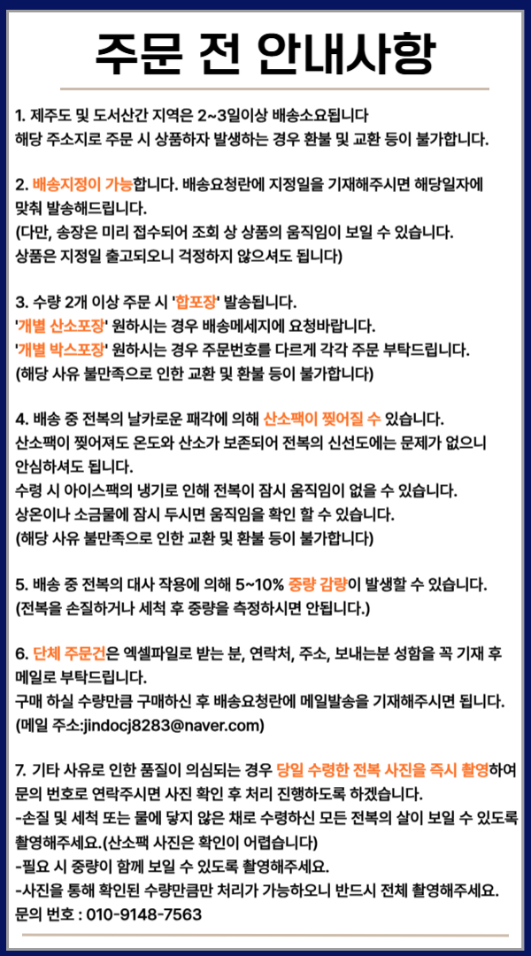 | 식품 등의 표시, 광고에 관한 법률에 따른 소비자안전을 위한 주의사항 | 상세페이지참조 |