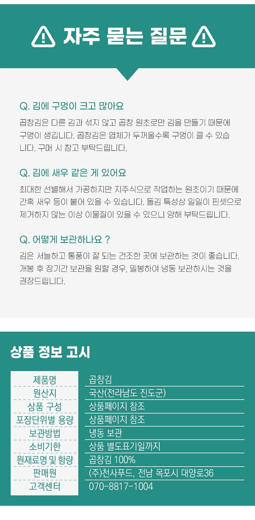 (천사푸드)최고급 진도 곱창김 특품 1톳 100매