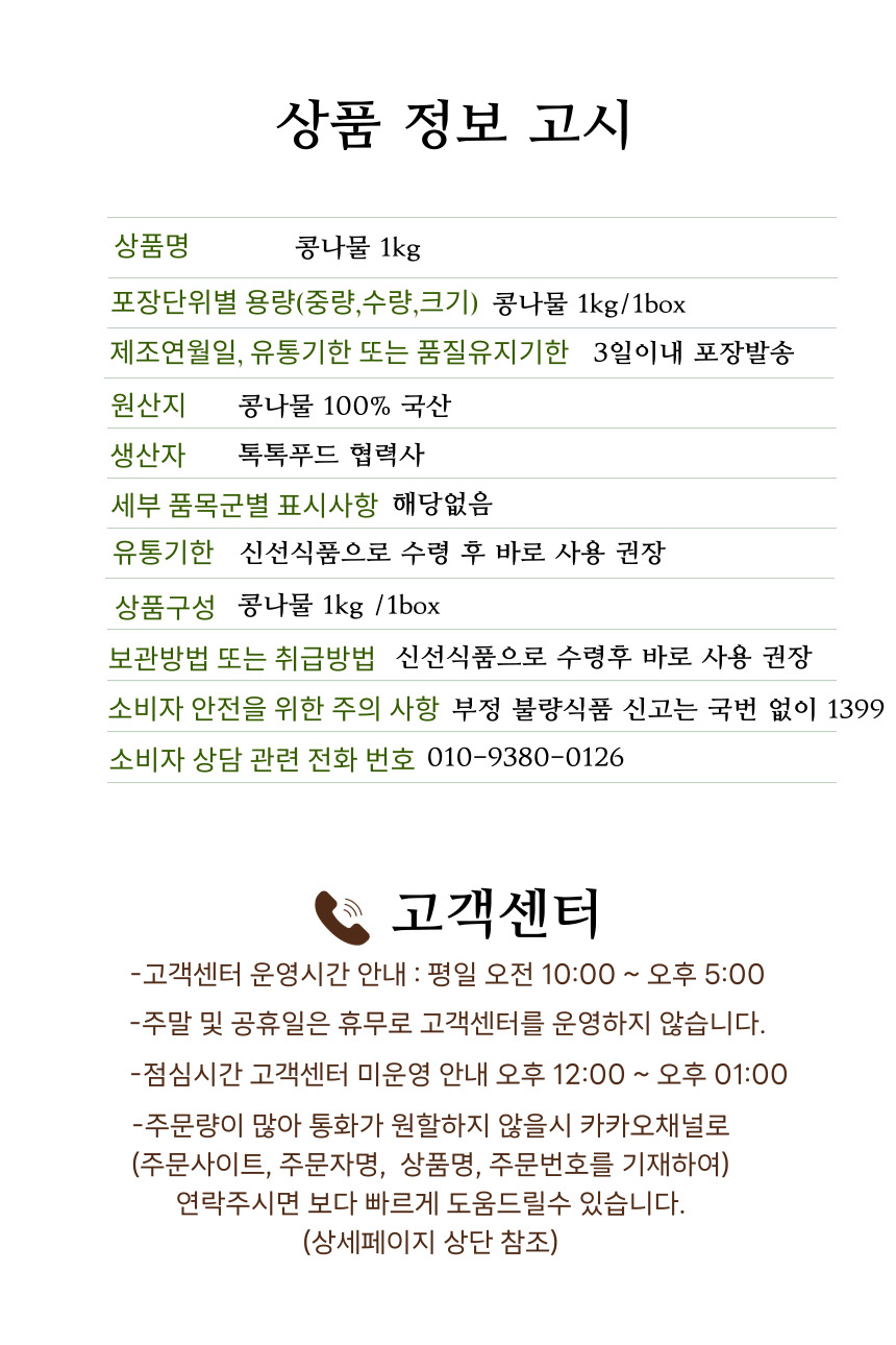 지하암반수로 키운 아삭한 국산 콩나물 1kg