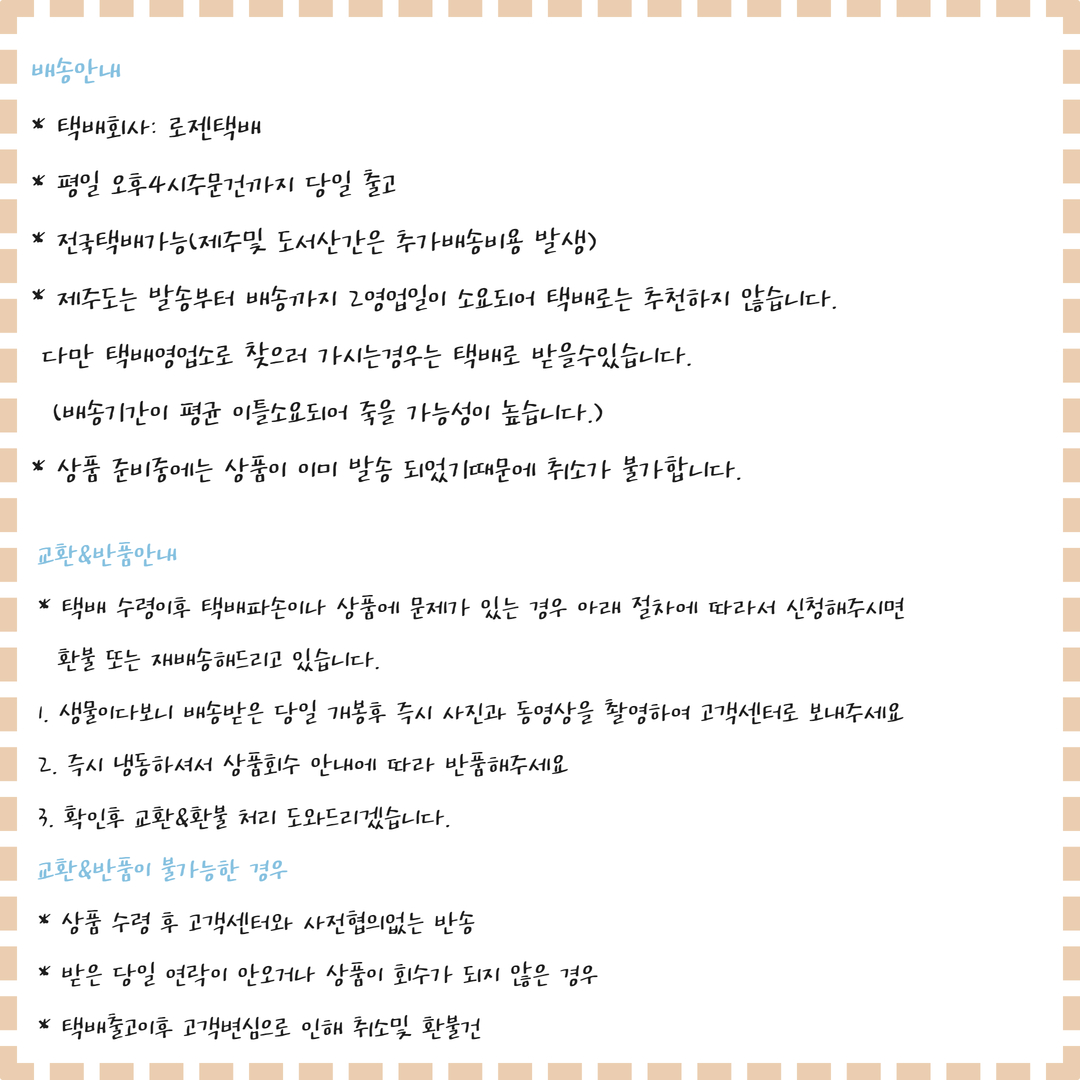 배송지나 택배사 사정 등으로 변경될 수 있습니다.